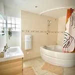 Gæsterne vil nyde haven udsigt fra værelset. Der er 1 badeværelser med separat toilet og et badekar.